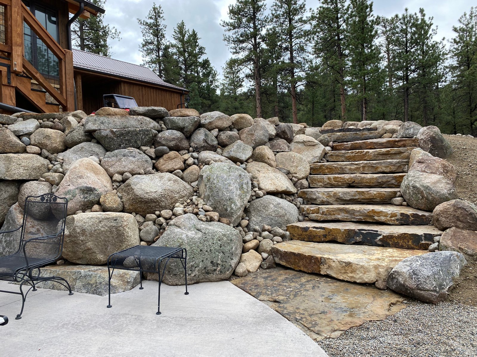 Natural rock steps designed to blend with your landscape and provide safe, attractive access. Large natural stone installations that add character and function to any yard.
